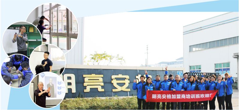 明亮安格開設(shè)培訓(xùn)班,以成熟的培訓(xùn)機(jī)制,特聘專業(yè)講師和優(yōu)秀加盟商為加盟商開展企業(yè)文化、產(chǎn)品知識、測量安裝、銷售技巧、活動策劃、市場推廣、渠道拓展、公關(guān)禮儀等專題培訓(xùn)。